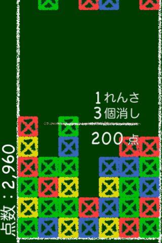 同じ色のブロックを縦横に3つ以上繋げると消すことができ、連鎖によって高得点を狙える。