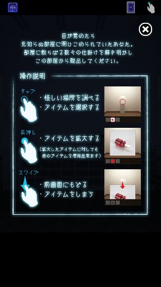 移動は左右にスワイプ、所持品は長押しで拡大、前画面に戻るときや所持品をしまうときには下にスワイプする。