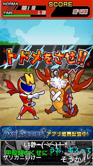 ひたすらツッコミを入れて、怪人の残りHPが少なくなったらトドメだ!