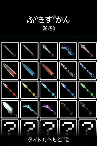 「ぶきずかん」、「モンスターずかん」では、今までに登場した武器(ネタ含む)などを見る事ができる。