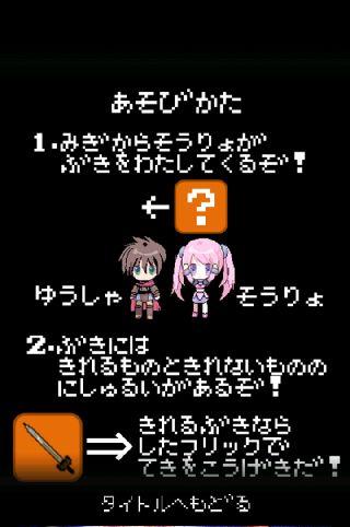 僧侶から渡された武器を使って、下方向にフリックする事で敵を倒す事ができる。